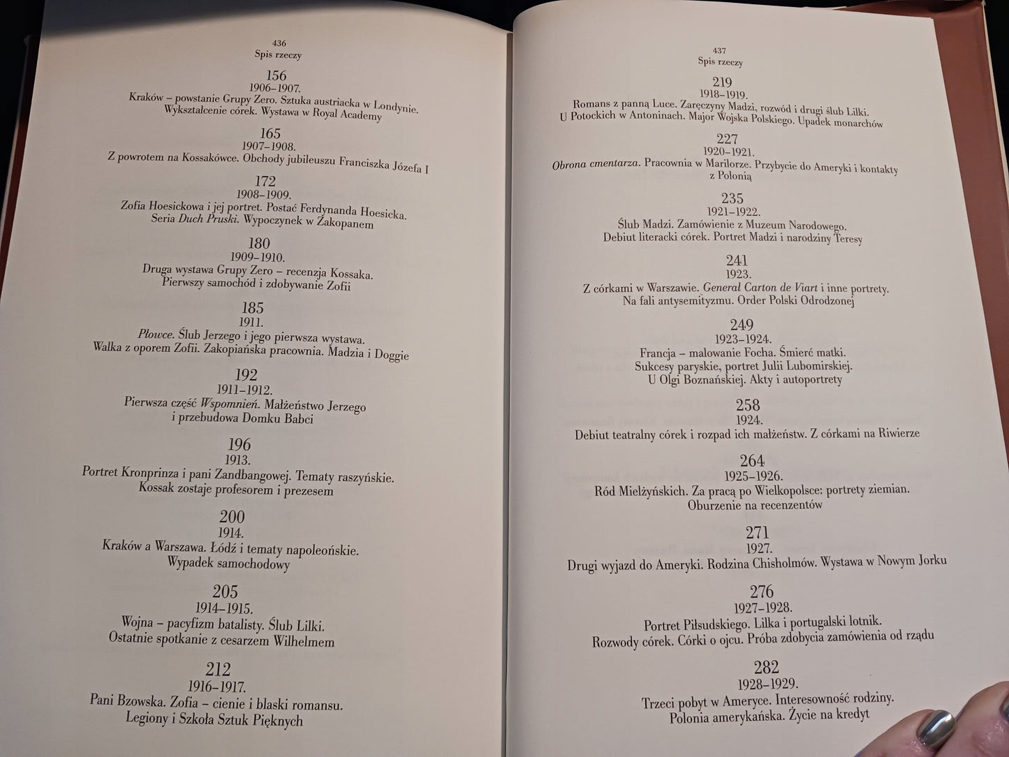 Lekka i wartka opowieść o Wojciechu Kossaku, malarzu bataliście, który namiętnie kochał życie, rodzinę, piękne kobiety, a najbardziej – swoją pracę. Poznajemy szczegółowo, rok po roku, jego twórczość, romanse, kłopoty z rozpieszczonymi dziećmi oraz nieustanne tarapaty finansowe. W tle dzieje Polski, sfery artystyczno-ziemiańskie, cesarskie dwory Berlina i Wiednia, amerykańska Polonia, Warszawa i Kraków.