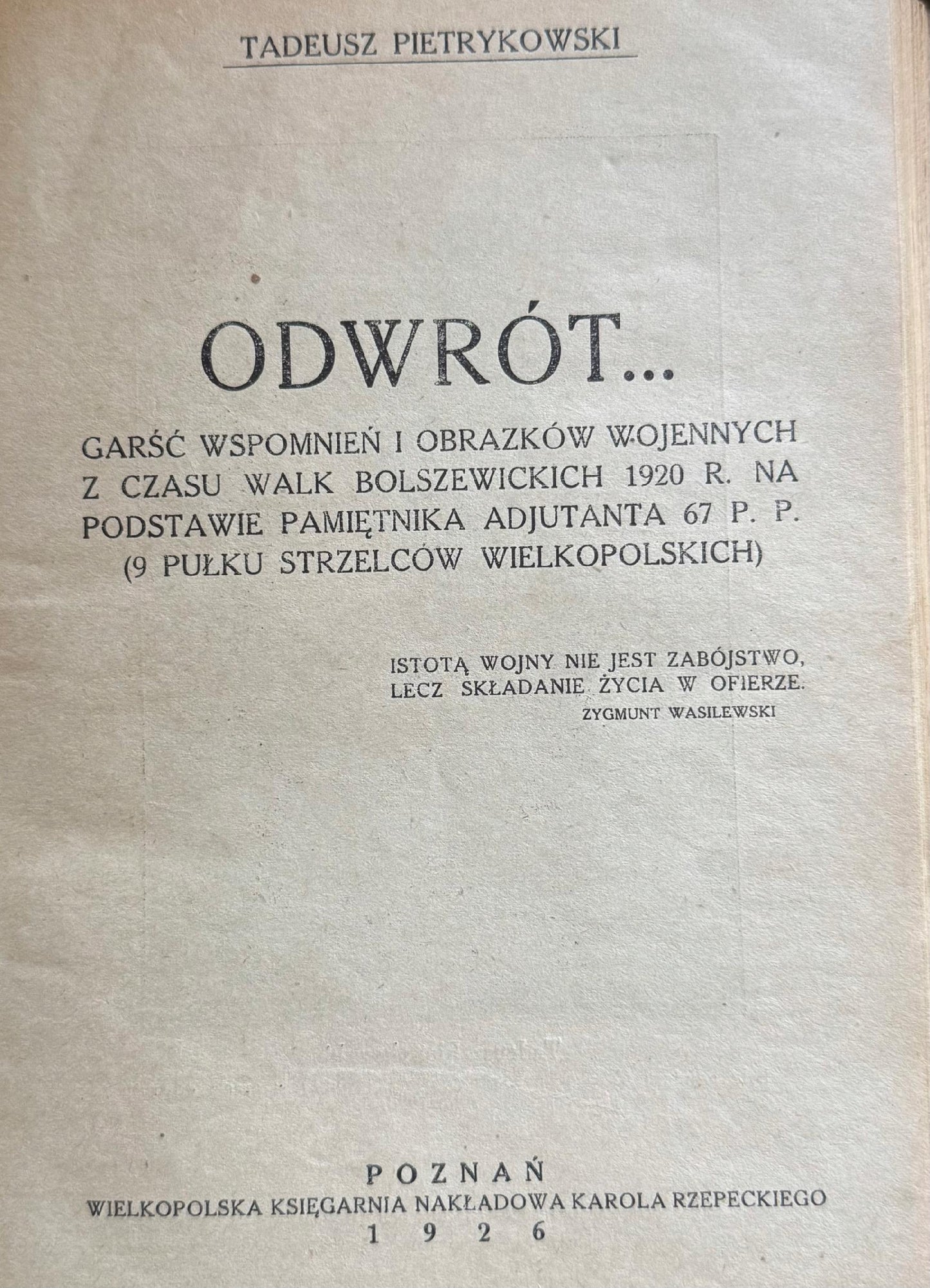 Tytuł: Odwrót... Garść wspomnień i obrazków wojennych z czasu walk bolszewickich 1920 r. na podstawie pamiętnika adjutanda 67 P.P. (9 Pułku Strzelców Wielkopolskich) (Tom XII serii "Boje polskie")