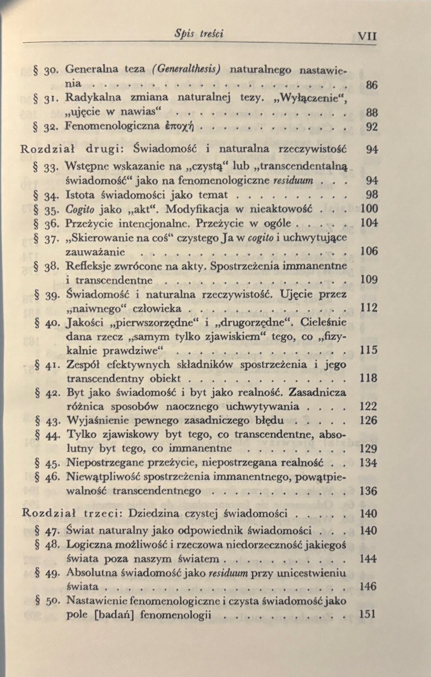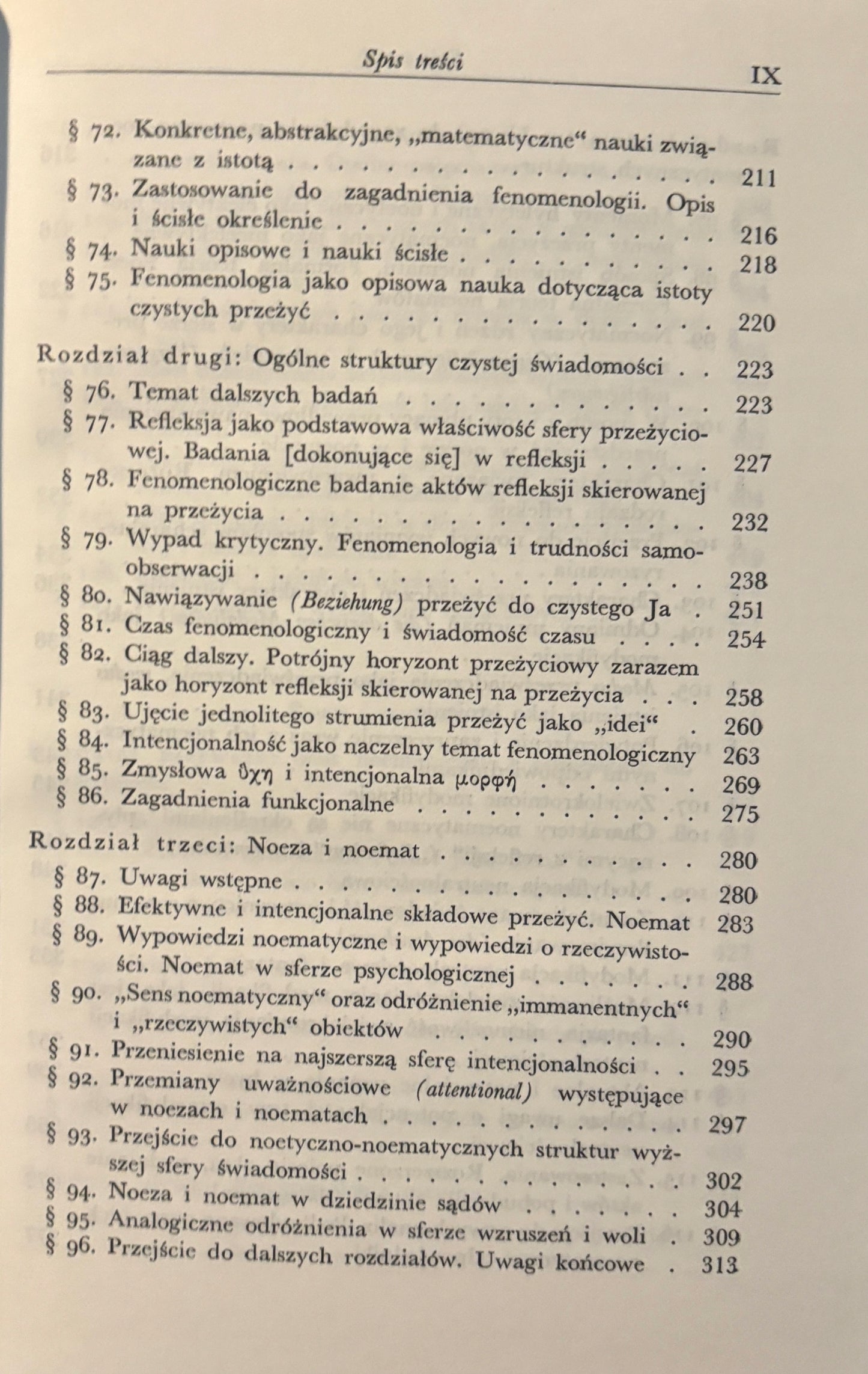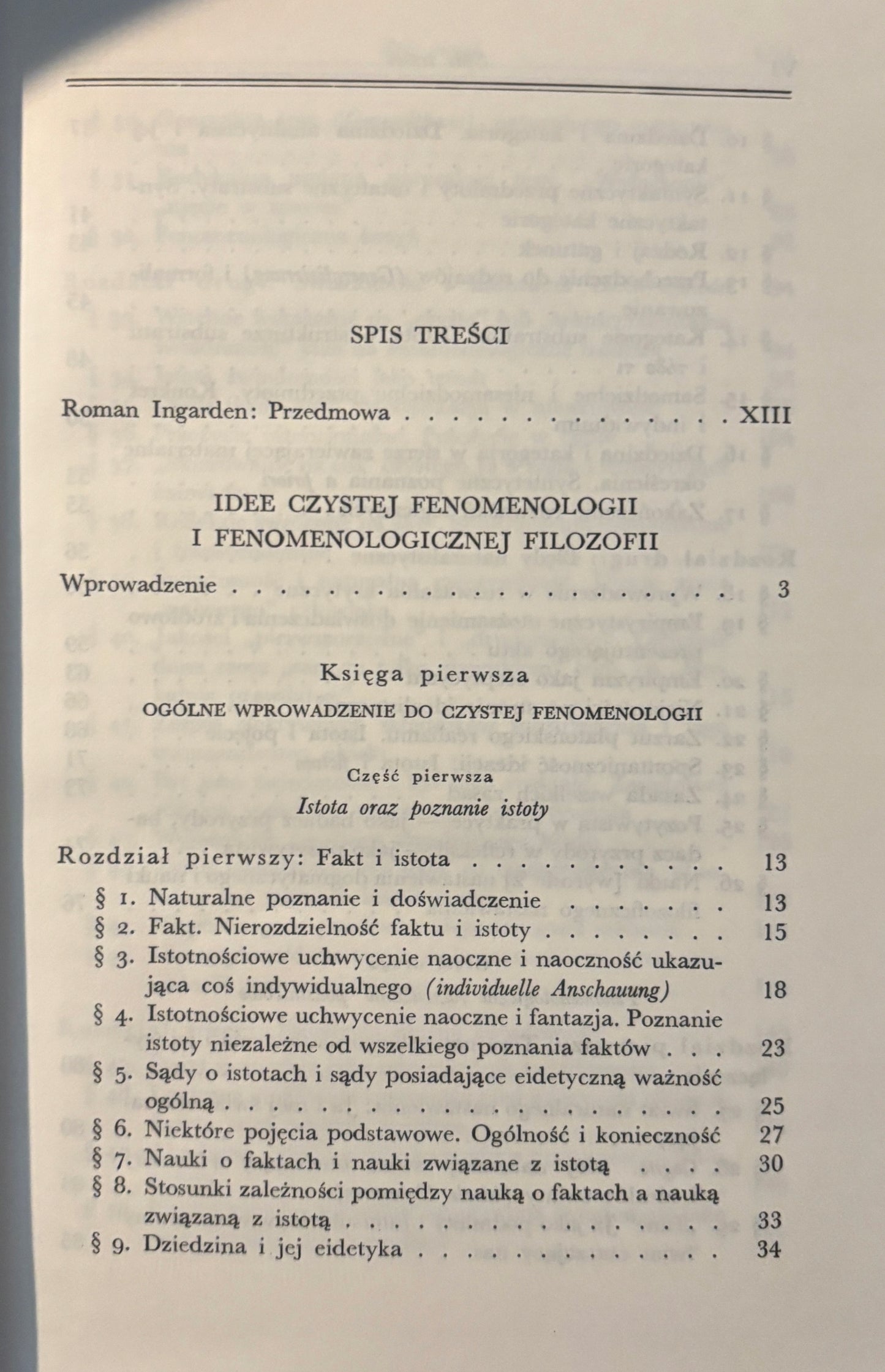 Księga pierwsza wprowadza w podstawowe pojęcia fenomenologii, takie jak „intencjonalność”, „epoché” i „czysta świadomość”, kreśląc wizję filozofii jako nauki ścisłej i uniwersalnej.