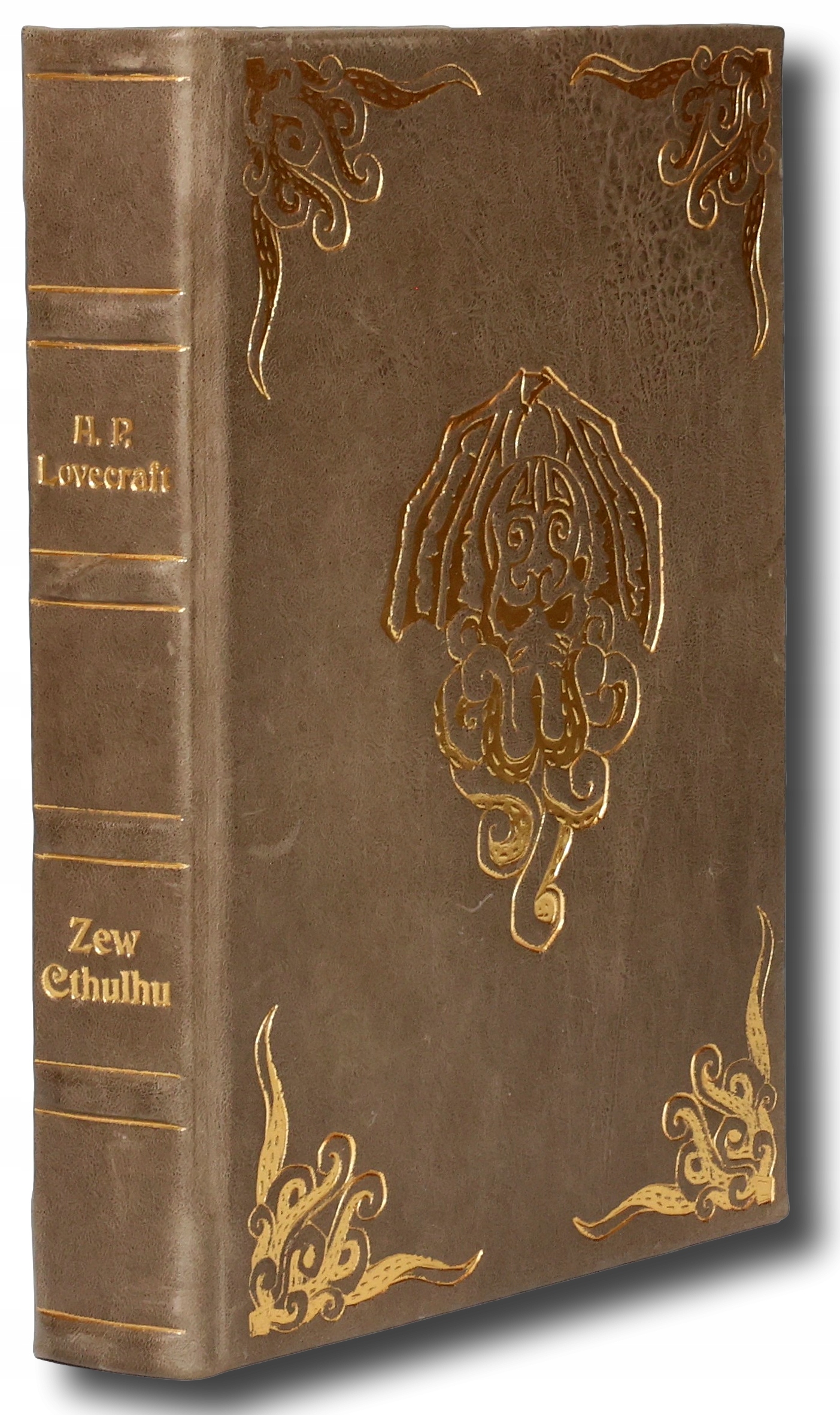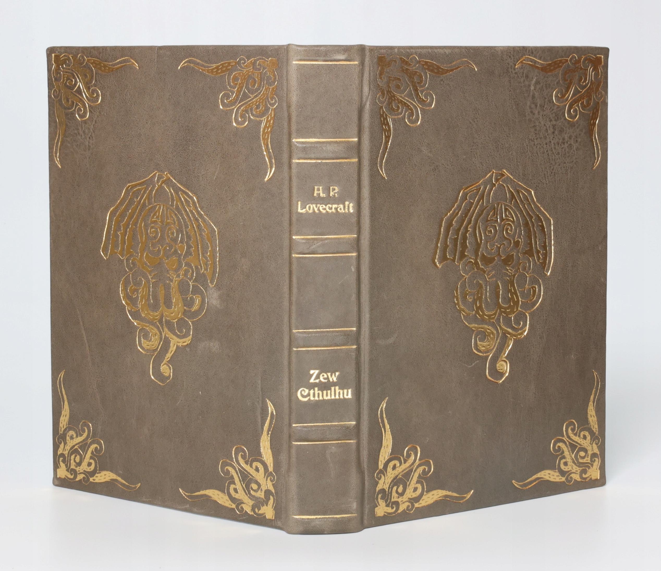 Artystycznie oprawiony egzemplarz w efektownej, skórzanej oprawie introligatorskiej z motywem przedstawienia postaci Cthulhu na obu zwierciadłach oprawy, który stanowi czytelny i graficznie mocny akcent nawiązujący do ikonicznej postaci powieści. Dodatkowe zdobienia w postaci motywów macek w formie ramy. Grzbiet pięciopolowy, z polami rozdzielonymi wypukłymi zwięzami podkreślonymi złotymi liniami; w jednym z pól złocona tytulatura. Całość dopełniają marmurkowe, ręcznie barwione wyklejki z motywem morskim oraz barwione na granatowo obcięcia kart.
